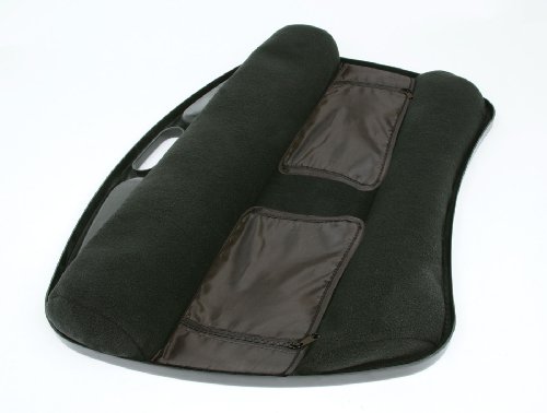 LapGear Deluxe Computer LapDesk Description:Strong, durable, yet lightweight molded-plastic construction is impact resistant and easy to clean, providing long lasting, reliable performance. Work surface includes a neoprene padded wrist rest and left/right mousepads. Zippered side storage pouches velcro up or hang to the side. Micro-Bead lap pads taper and conform to the lap for maximum comfort and stability. LapShield added for extra saftey, blocks EMF/EMI and Heat from the lap.